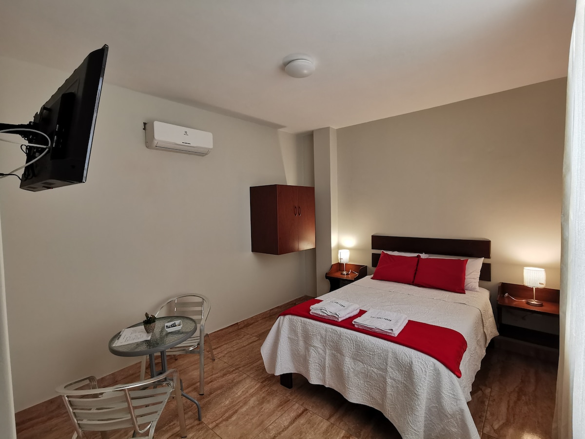 Este acogedor lugar tiene una ubicación céntrica, puedes acceder con facilidad a todas las zonas de la ciudad. Está rodeado de restaurantes, farmacias, minimarket's y demás. El hotel te brinda atención personalizada, limpieza diaria por habitación. Por un costo adicional puedes acceder al desayuno americano.