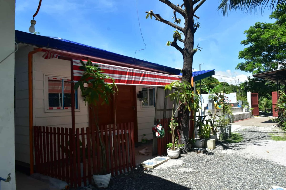 this small blue house is simple but modern. it has a relaxing small room with full sized bed with 1hp ac that has the ability to make the whole house cold if you let the room door open and close all the doors and windows. you can also enjoy watching tv with our premium Netflix subscription. we have everything you need inside the house just bring in your clothes and foods to cook or eat. if you need some help we live beside the yellow house just call out loud ate or kuya! we'll be there.
