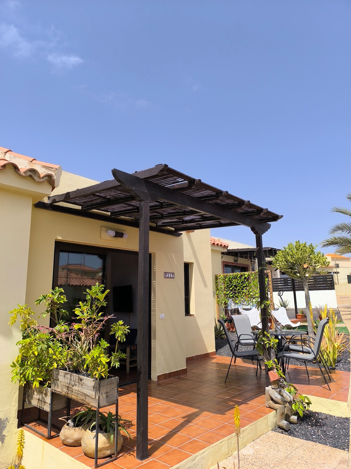 Desideri una vacanza all'insegna del comfort, del relax e della tranquillità? Questo è il bungalow ideale per te! Questo appartamento è situato in una posizione strategica dell'isola: a 20 minuti dalla spiaggia El Castillo, 10 minuti dall'aeroporto e vicina a supermercati, al centro commerciale, bar, ristoranti e al campo da golf. Il parcheggio è gratuito e potrete fare il check-in in completa autonomia.