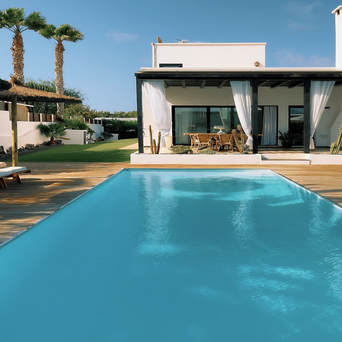 Villa NOMA is a recently renovated design space nestled in La Capellanía, near Corralejo and Lajares. An oasis that boasts a heated pool, 3 bedrooms, 2.5 baths, and a serene garden surrounded by swaying palm trees for the perfect indoor-outdoor experience. A project by 'Noogar Interior Design,' that blends a modern aesthetic with ethnic vibes and Mediterranean influences. A cosy and stylish holiday villa with pool where to enjoy an unforgettable, relaxing stay in Fuerteventura.
