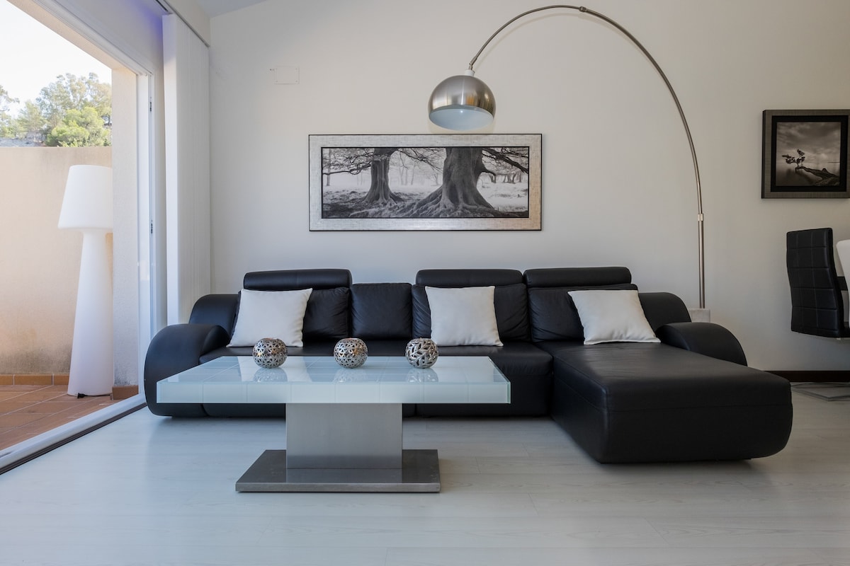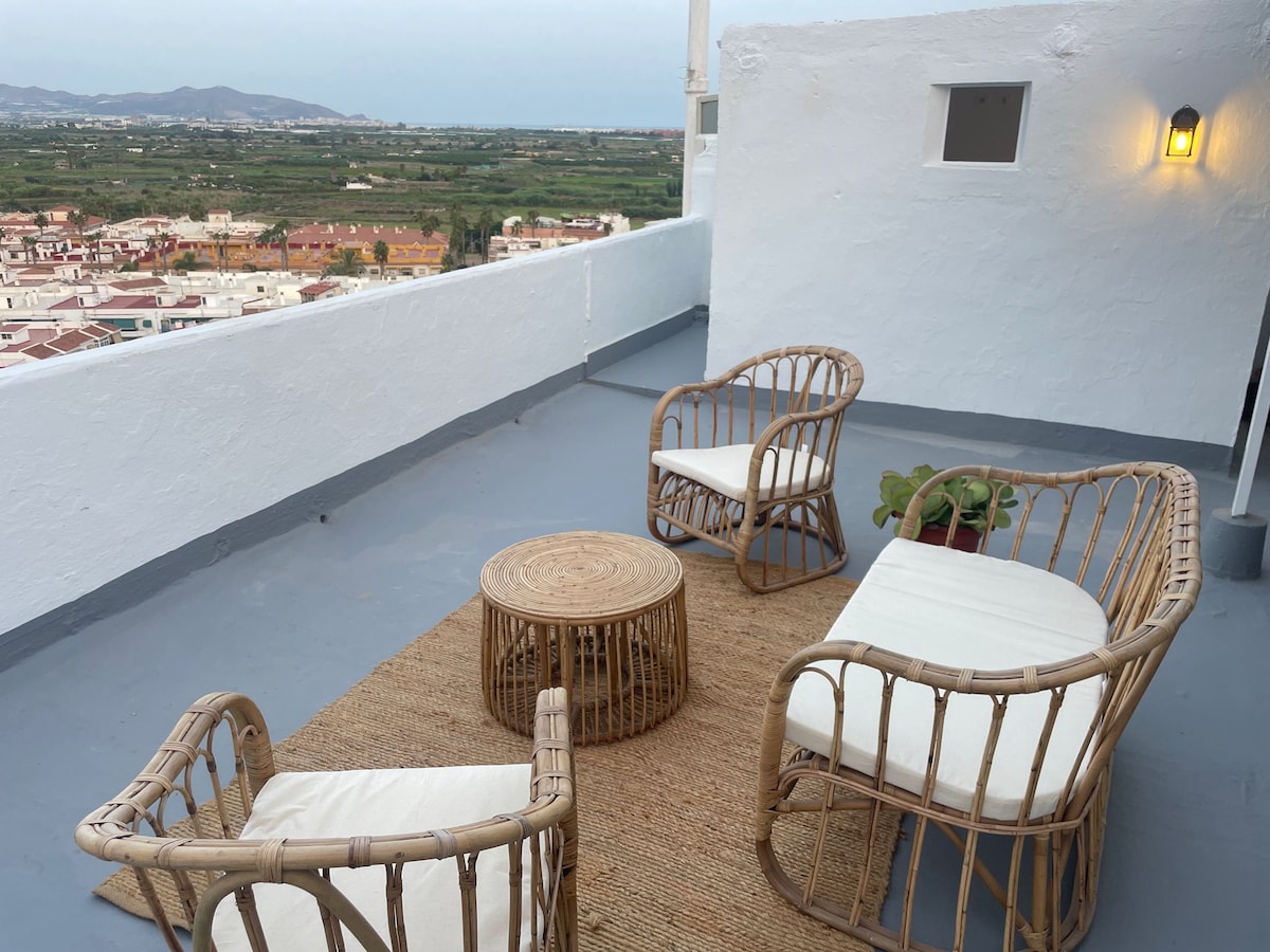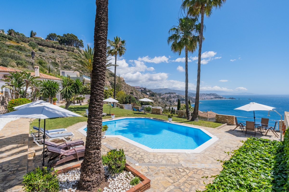 Enjoy an exclusive stay at the Cliff House, featured on Netflix's "The World's Most Extraordinary Homes." Located on the Granada coast, it combines unique design, Mediterranean views, and an ideal year-round climate. It boasts a spacious 150 m² living room with an integrated kitchen and panoramic views. Just 5 km from the beach and close to the Sierra Nevada mountains, it's the perfect place to enjoy the combination of sea, nature, and mountains.