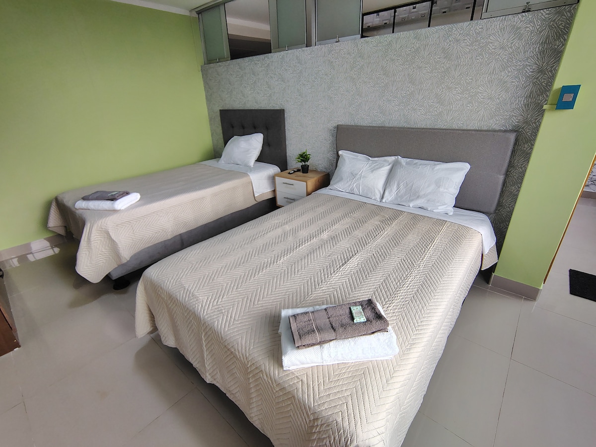 Enjoy comfort and the natural charm of the jungle in this cozy apartment located in a quiet area. Perfect for families, couples, or remote workers. The apartment features 2 bedrooms, a bright living room, kitchen, bathroom, fast Wi-Fi, and free parking. 4 blocks: Recreation area with pool and parking 1 block: Mini-market Nearby: Local restaurants with traditional food The Owl Caves, Lake of Miracles, and the San Cristóbal Viewpoint are only a few minutes away by car.