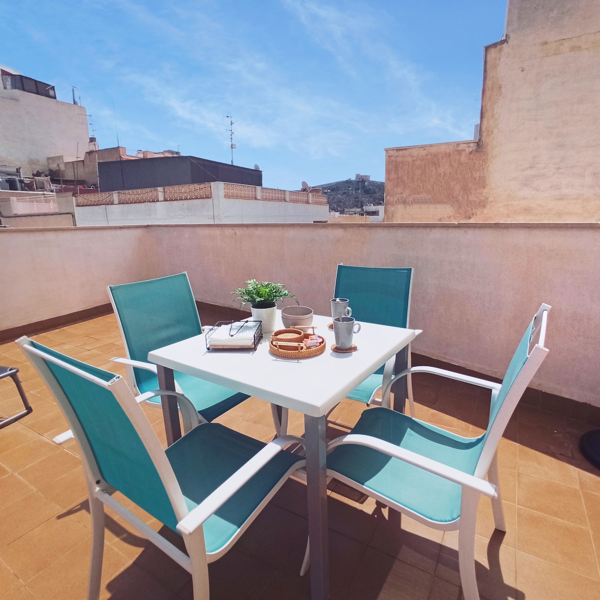 Moderno,cómodo y céntrico apartamento en planta baja con 140 metros de terraza equipada,con ducha exterior ,3 dormitorios ,2 dormitorios en la planta baja y uno en la planta superior que se accede con escaleras , 1 baño con ducha, 1 aseo , y dispone de parking.zona tranquila, playa a 20 metros,con paseo marítimo, tiendas , restaurantes y puerto deportivo con actividades como kayac, mini golf, tenis, cuidamos mucho el detalle de bienvenida.