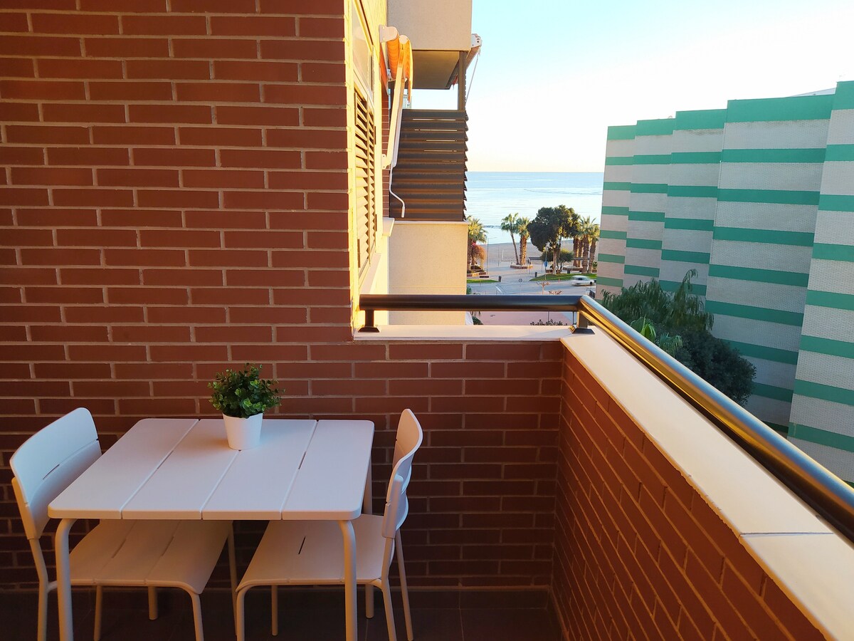 Lo mejor de este apartamento es la vista de 180 grados al mar desde el apartamento. Podrás desayunar mirando al mar y podrás oír las olas mientras duermes. Acogedor y cómodo con todo lo que puedas necesitar para tener unas vacaciones de lujo. Gracias a nuestro Wifi, podrás teletrabajar mirando al mar. Hemos instalado recientemente toldos eléctricos, si sales de casa y se levanta viento, se recogerá automáticamente.