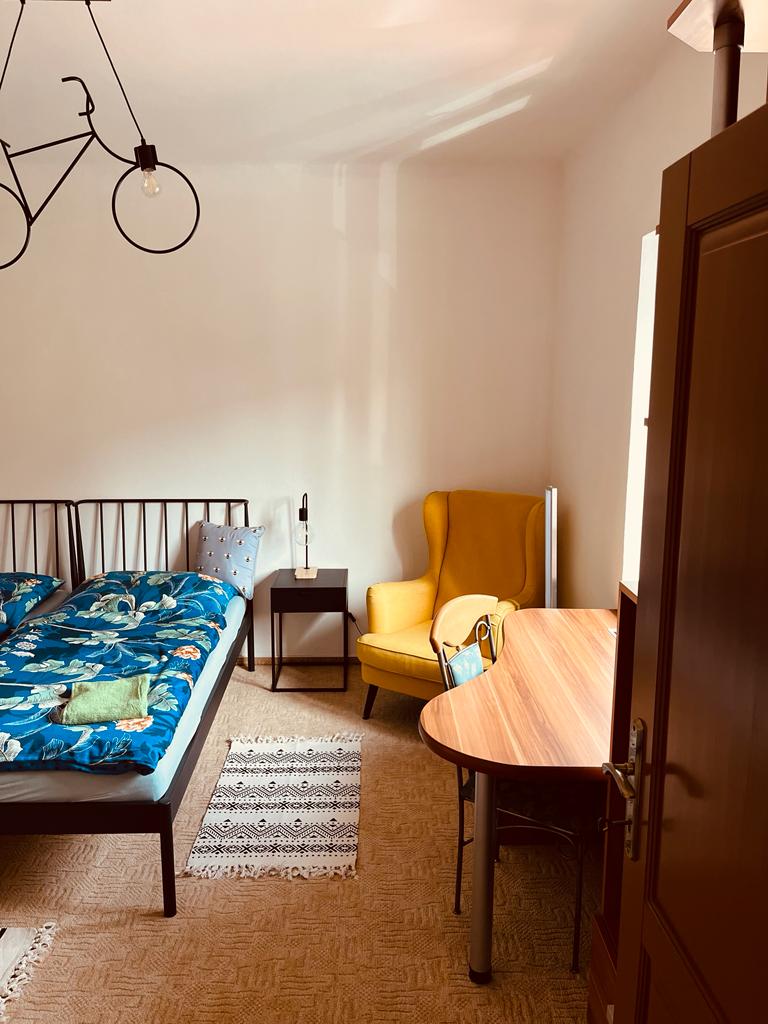 Jednopokojový slunný byt s kuchyňským koutem, vlastní koupelnou a WC. Dům postaven cca 1830 na základech středověké brány do města na cestě "Svatá Anna" z Čelkovic, leží těsně pod hradbami na jižním svahu nad údolím řeky Lužnice, 2 minuty pěšky od hlavního náměstí. Vybavení koupelny - velká vana i sprchový kout. Veřejné parkoviště vzdáleno 30 m od domu (cena od 40,- Kč/den). Vchodové dveře opatřeny kódovým zámkem (kód bude zaslán smskou) = samoobslužný check-in. Tábor (not Prague!)