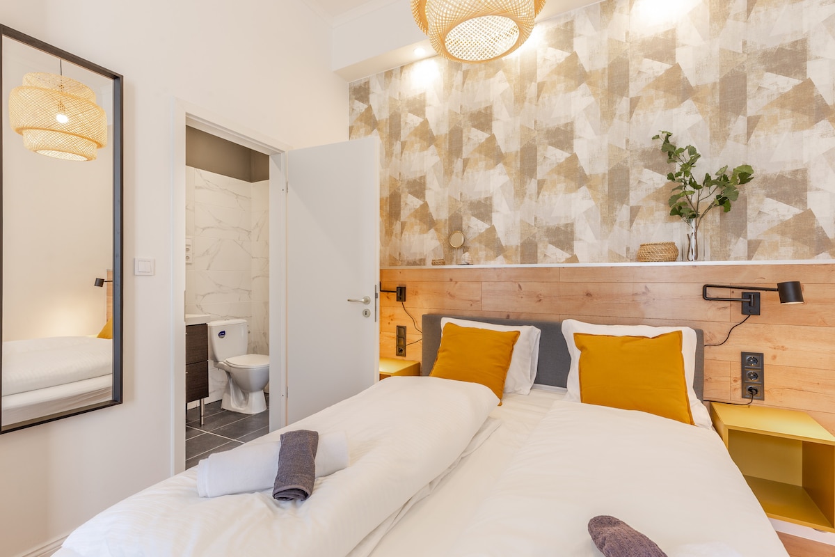 Brand new, beautifully designed room in the heart of the city with AC, fridge, luggage room, baby amenities. Everything is within walking distance-restaurants/bars, attractions, famous sights, grocery stores, (Basilica, Budapest Eye, Danube, Fashion street.) You can get the best vacation in Budapest ever. Daily cleaning service is included!