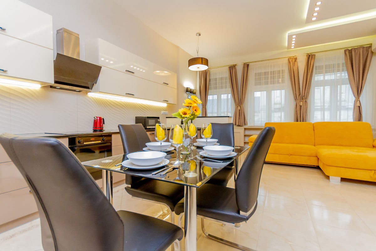 Welcome to my modern apartment nestled in the heart of Budapest's historic center. District V- the most historical district of Budapest, this apartment is just steps away from iconic landmarks like the Hungarian Parliament Building and St. Stephen's Basilica. The downtown Budapest apartment caters to all your needs. Enjoy the vibrant atmosphere of one of Europe’s most beautiful cities while retreating to your peaceful oasis in the historic building.