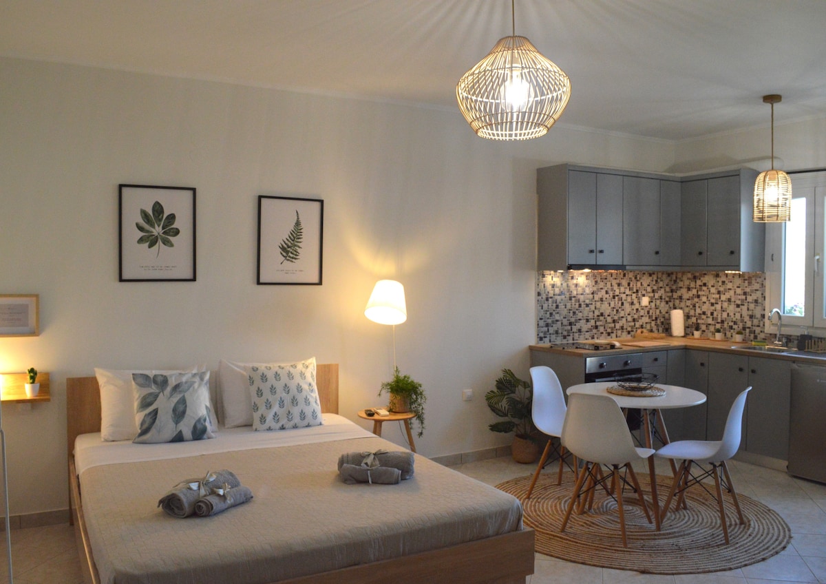 Kefalonia is a large island full of amazing sights. Our lovely apartment is placed right in the middle and can be your perfect base to explore it all. Less than 10’ from the airport or Argostoli, in the valley of Mazarakata, at the foot of St. George castle. Our place is a well-designed modern, one-bedroom apartment within a residential building belonging to our family. Quiet, private and stylish: an excellent couples’ home for a great vacation experience in Kefalonia.