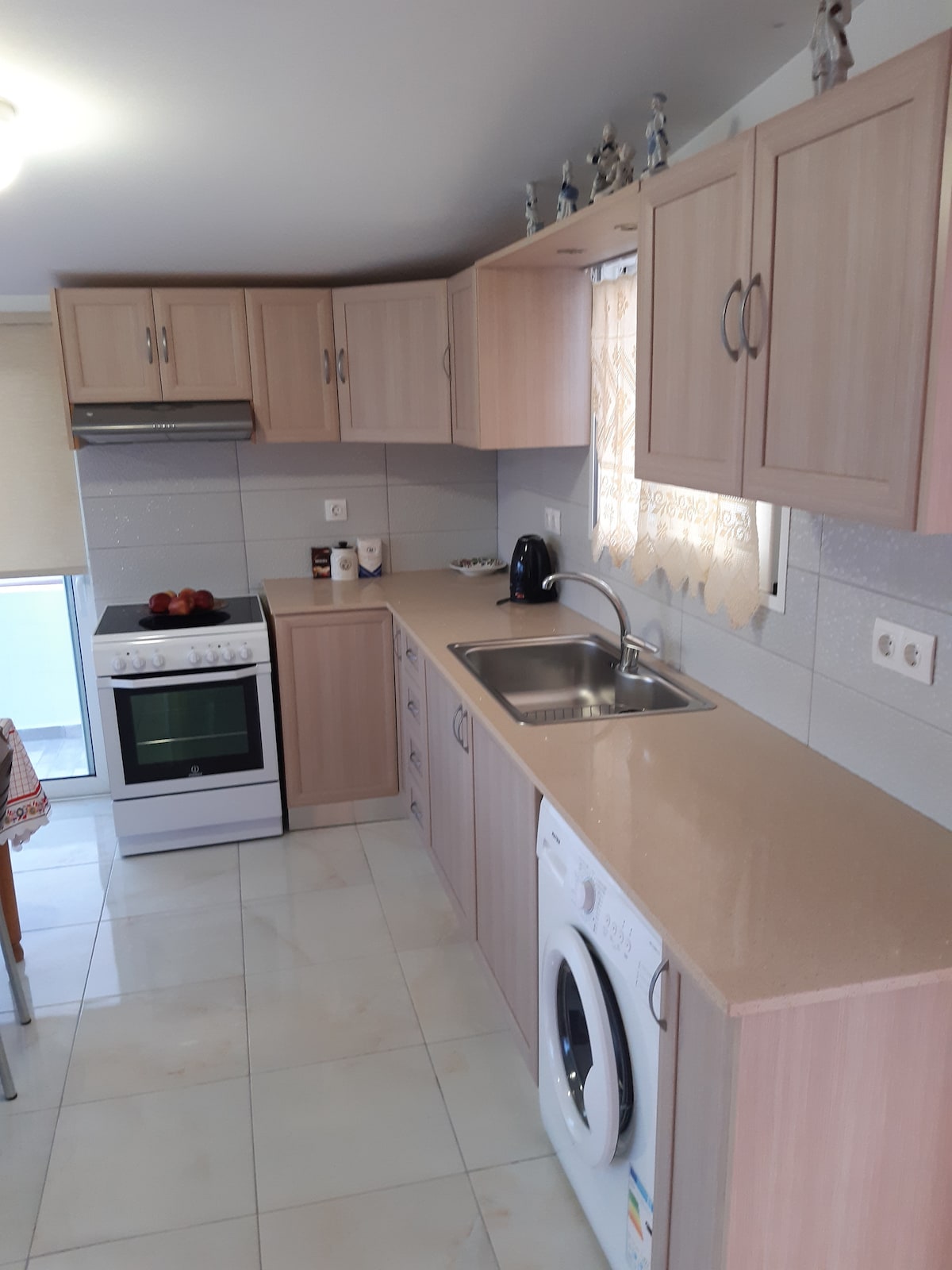 Magnificent view with a large courtyard in front of the house, the sea is about 5 meters away. The indoor space is 90 sq.m and the local area is quiet. The ground floor of the house includes a kitchen , a bathroom and a living room with a sofa-bed . The first floor has a large bedroom with a large bed for two people and a second bedroom with two single beds. Also there is a small restroom.
