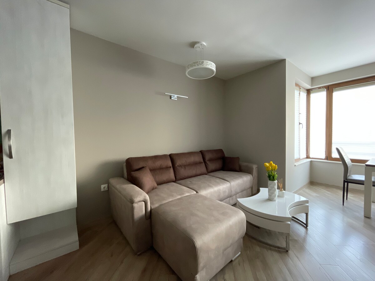 🌅 Location and Atmosphere - The apartment is conveniently located within walking distance of the city center and the sea garden! 🏠 Apartment Tour: - Bedroom with 2 wardrobes. - Bathroom with toilet. - Dining area with a kitchenette equipped with a refrigerator, stove, coffee machine, kettle, and everything needed for a household. - Sofa bed suitable for sleeping. - Spacious terrace ideal for spending your free time. ⭐️ The apartment is equipped with everything you need for your stay!
