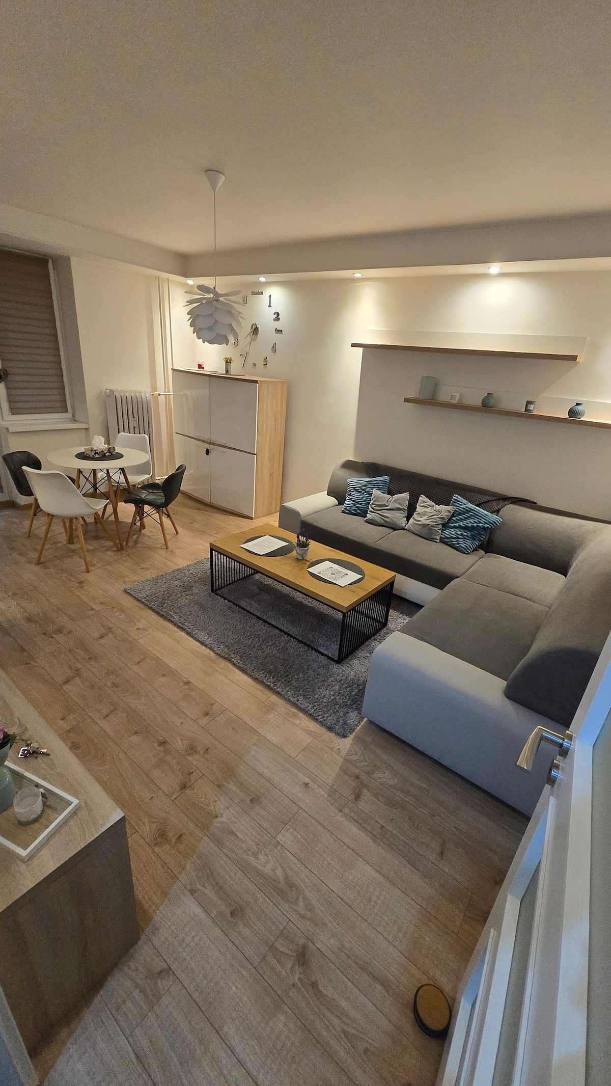 Hi :) Guests say the apartment is nice, sunny and with good energy. :) You have the whole apartment to yourself. Flat have a green balcony, a big living room, a bathroom, a toilet and a charming kitchen :) (63 m2) Parking is free in front of the apartment and guests have a towel, cosmetics, coffee, tea and other small items FOR FREE... The apartment is old but clean and fragrant, so guests feel good here. I look forward to your visit :)