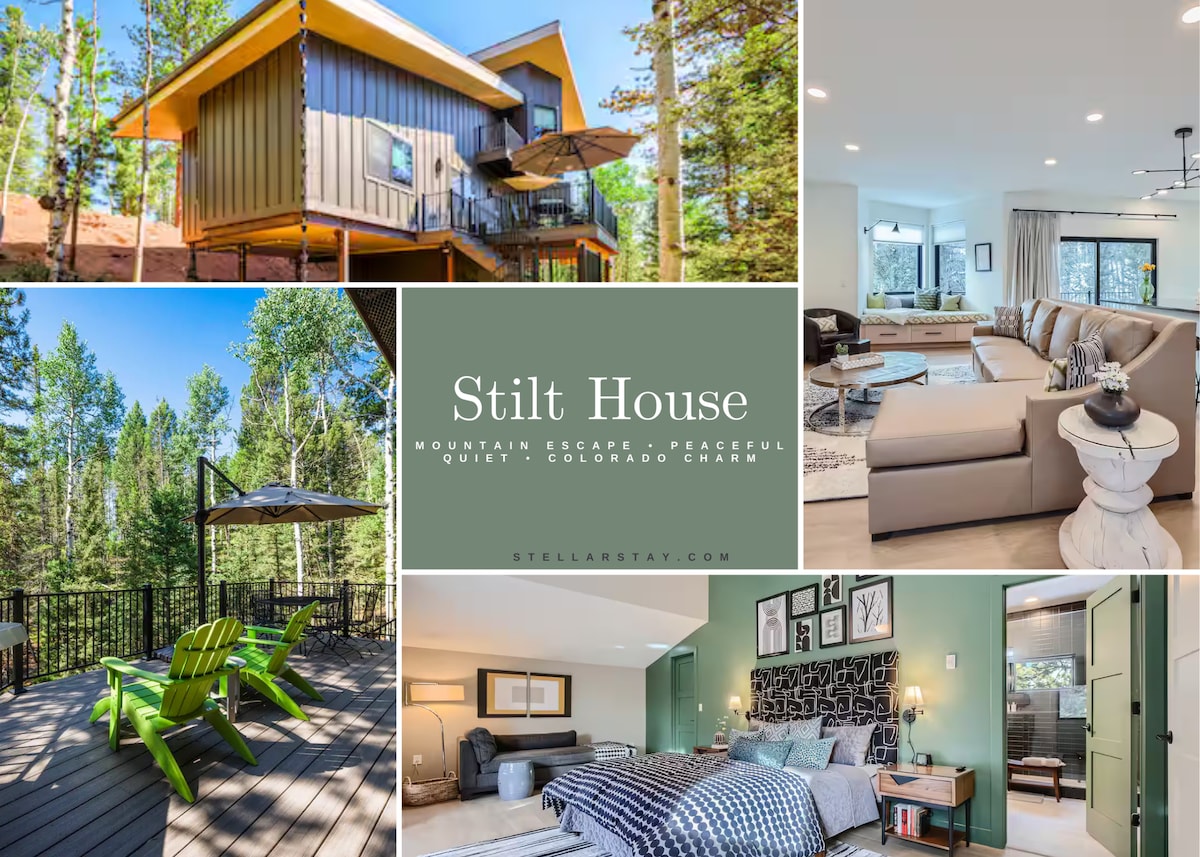 Discover a stunning mountain retreat nestled in a serene neighborhood community. Immerse yourself in proximity to hiking trails, fishing spots, local breweries, and captivating attractions around Pikes Peak. Whether you're planning a memorable family vacation or a romantic getaway, The Stilt House, equipped with everything you need – from a gourmet kitchen to a cozy ambiance for family games and movie nights, offers the perfect blend of comfort and charm.