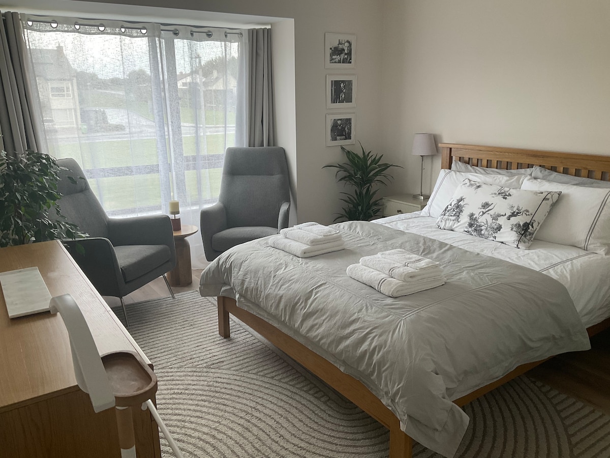 Hello from the rolling hills of Sligo! Our property is a spacious, modern, 1st floor studio appartment adjacent to our family home. It is fully furnished to a high standard with all mod cons. Bright & airy with a beautiful view over mature hardwood forest, it is nestled on a working sheep farm. It is a short 10 minute drive to Sligo Town, 3 minutes to Castledargan Hotel and Golf Course, and 5 minutes to Markree Castle with easy access to upland and forest walks, and world renowned beaches.