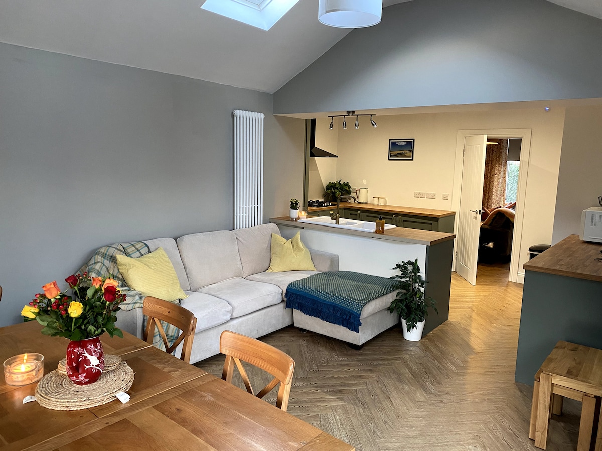 A modern, light and airy Studio Apartment with separate bathroom. Being a Studio Apartment everything (except the bathroom) is located in one room. 1 luxury kingsize bed, well equipped kitchenette, dressing table, breakfast bar with stools and all of the necessary utensils. The Studio is also equipped with a Smart Tv and access to Netflix all at no extra cost. Completely private Garden Hot Tub/Spa. Please advise at time of booking whether you intend to use the hot tub.