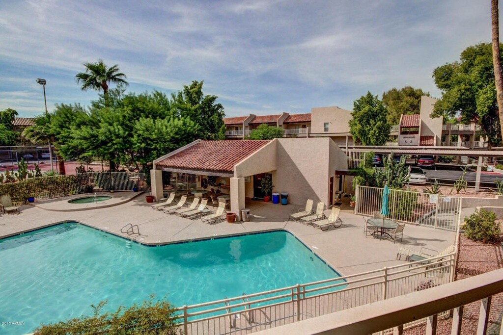 Enjoy breathtaking unobstructed 270° views conveniently located right in the middle of Metropolitan Phoenix! Spectacular sunrise/sunsets in a quaint Mid Century Modern hilltop community nestled in the North Central Phoenix Mountain Range. Take a stroll along one of many top rated recreational trails nearby or relax by the pool! 2 bed(king&queen), 1.5 bath. Cruiser bikes & electric scooters w/ helmets available for use! Recent upgrades. Short drive from any major city attraction!