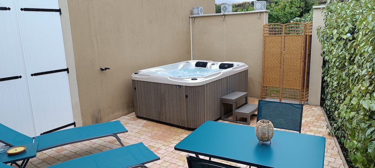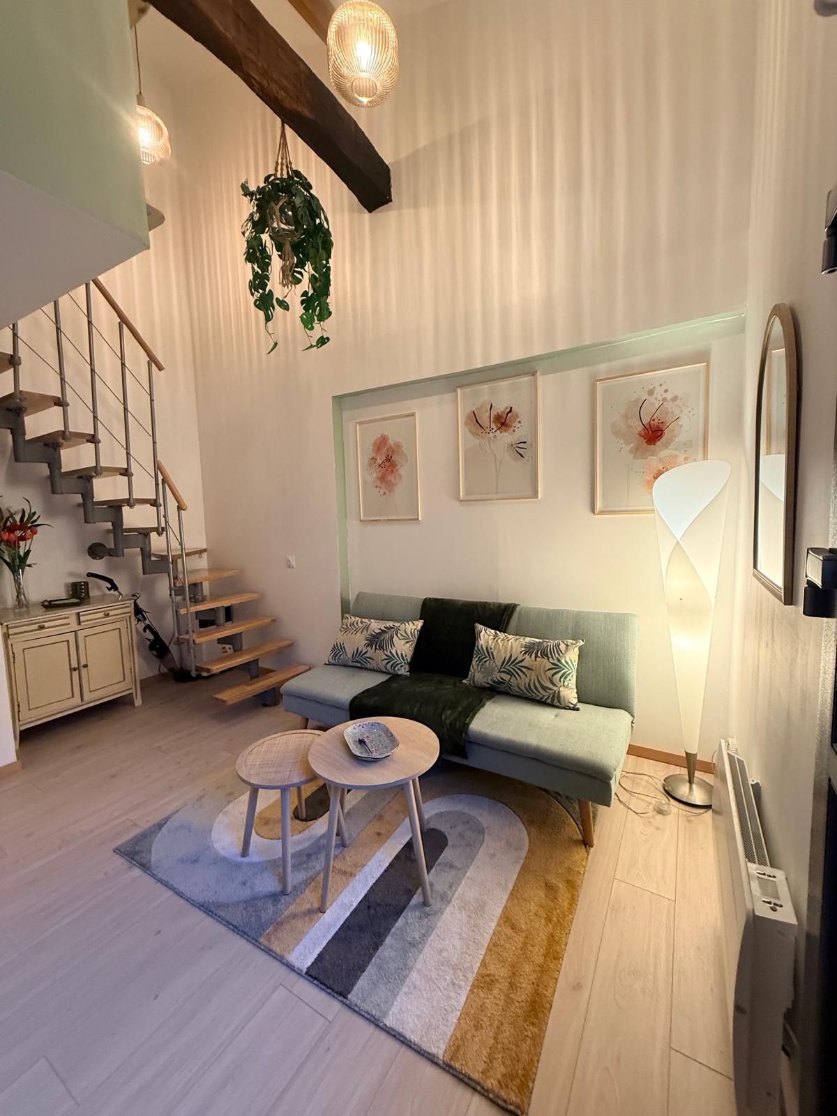 Petit T2 dans une cour pavée avec 2 oliviers, entrée indépendante et petite terrasse privée, dans notre corps de ferme. A 1 km du centre ( cars, boulangerie, poste, banque, supérette, boucherie, coiffure, pharmacie…) Kitchenette :plaques, frigo, micro ondes, Senseo, air frayer, lave linge, lit 160, linge de lit et serviettes fournis Pas de TV Sauna dispo :5€/heure pour 2 à 4 pers Canapé convertible 120cm 1 à 2 personnes en plus (10 euros en +/nuit) Lit BB à dispo Animaux non acceptés