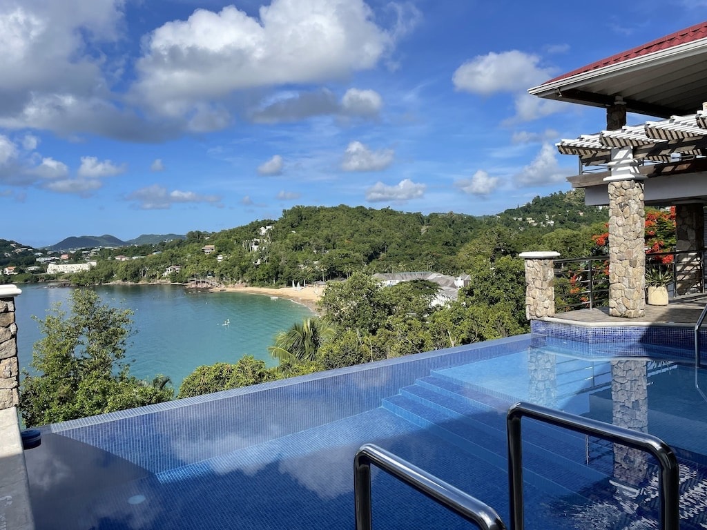 Relaxing location with breathtaking views This luxury villa has ocean views and is close to Marigot Bay beach, restaurants, shopping & nightlife, you can enjoy swimming, snorkeling, or just a cozy place to relax. We offer discounted taxi & tour guides services. We help plan your day, A car rental is a better option to explore island Gated parking is available. Surveillance camera on the outside the premises Excellent WiFi to work from home