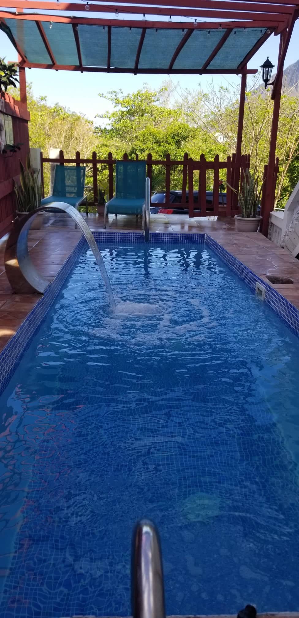 Come be refreshed on this family estate located on 4 lush tropical acres of land with magnificent views of the the north and the neighboring island of Martinique. Enjoy the most amazing sunsets on the sprawling patio. Despite its tranquility, the property is ideally located less than 10 min drive from Castries city, and some fine beaches. 2 min walk up our driveway and you are on the bus route. Within a 10 min walk are a bakery, mini mart, bars, restaurants and food vans. All yours to enjoy.