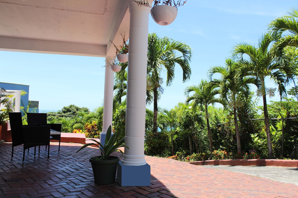 One of 3 suites (see my profile to view other suites) within our family home, located on 4 tropical acres of land with magnificent views of the north and the neighboring island of Martinique. Enjoy the most amazing sunsets on the sprawling patio. Despite its tranquility, the property is ideally located less than 10 min drive from the city, and some beaches. A 2 min walk up our driveway and you're on the bus route. Within a 10 min walk are a bakery, mini mart, bars, restaurants and food vans.