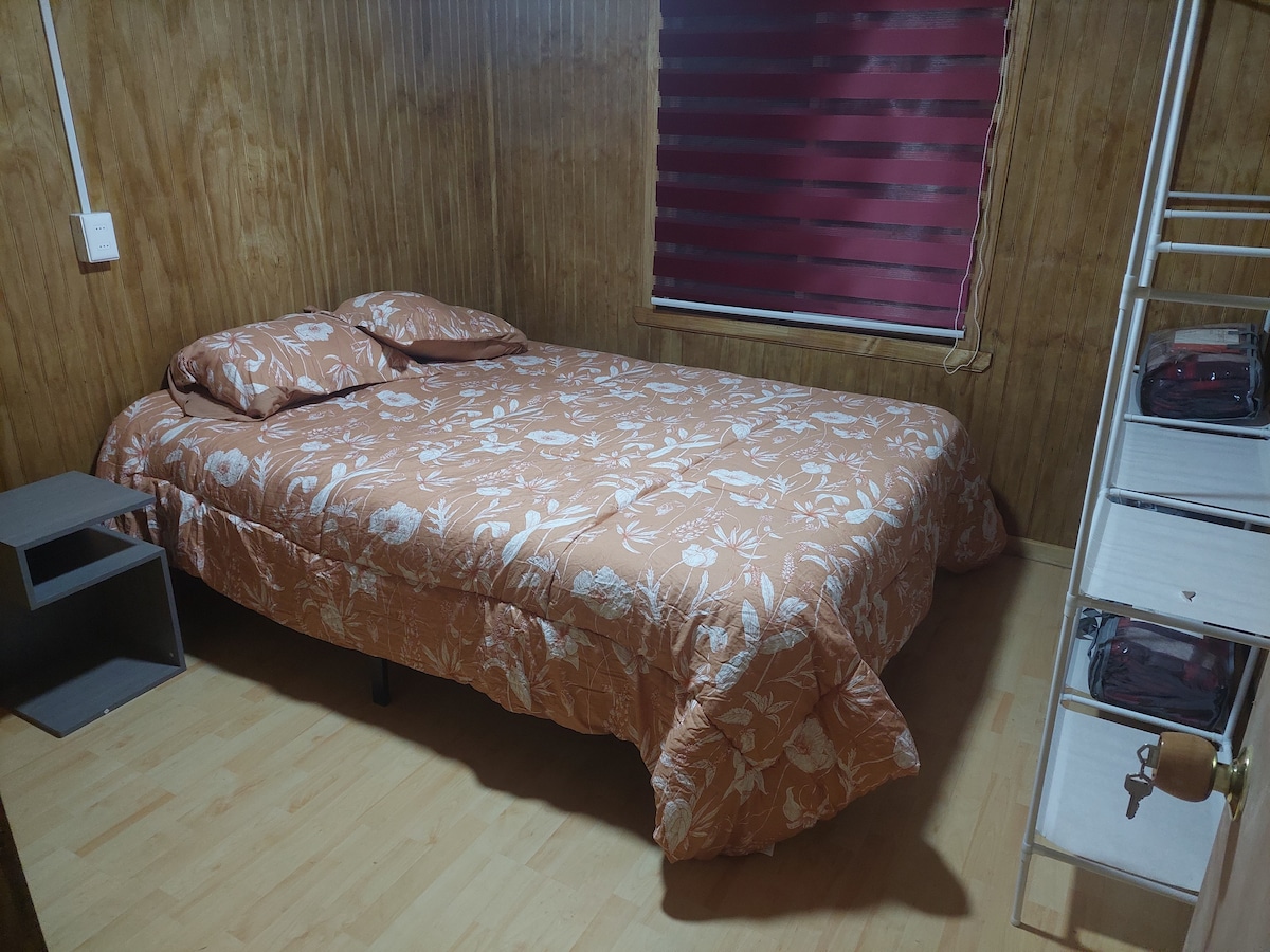Departamento para familia de 4 personas o menos. Cuenta con cama de 2 plazas y 2 futones. Barrio residencial y tranquilo. Cerca de locomoción colectiva (1/2 cuadra) y a unos 10 minutos del centro de la ciudad en vehículo. Lugar completamente independiente y cuenta con estacionamiento para vehículo al interior de la propiedad (cerrado con reja y portón eléctrico)