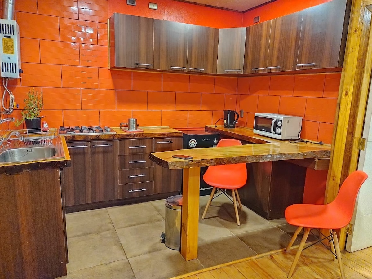 Vive la experiencia única de vivir en Palafito - sector Céntrico, Tranquilo y Seguro. Departamento independiente en Palafito. Es un ambiente amplio, equipado con cama matrimonial + sillón cama, cocina abierta, TV/Wifi, y baño cómodo. Calefacción central. Todo lo necesario para que tu estadía en Chiloé sea la más grata experiencia.