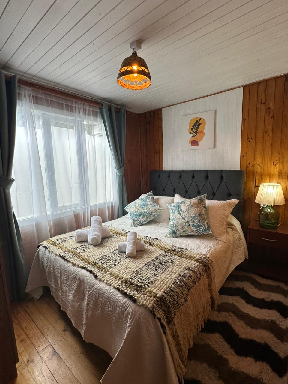 Cabañas nuevas y equipadas completamente, la cual tiene la comodidad necesaria para descansar y conocer la isla, ubicada en el corazón de chiloe, cuenta con una vista maravillosa y espectacular hacia la cordillera de los andes y archipiélago de chiloe. También zonas cercanas para trekking, running, nadar, andar en bicicleta y kayak.