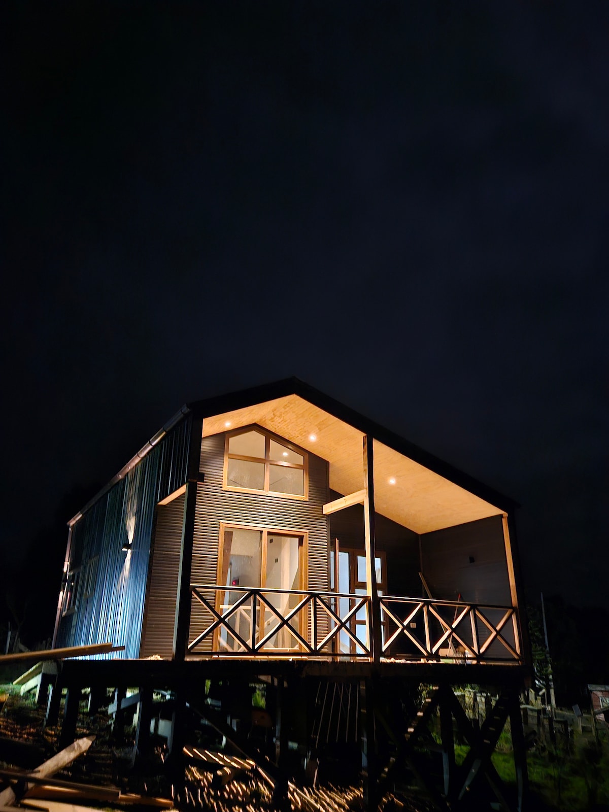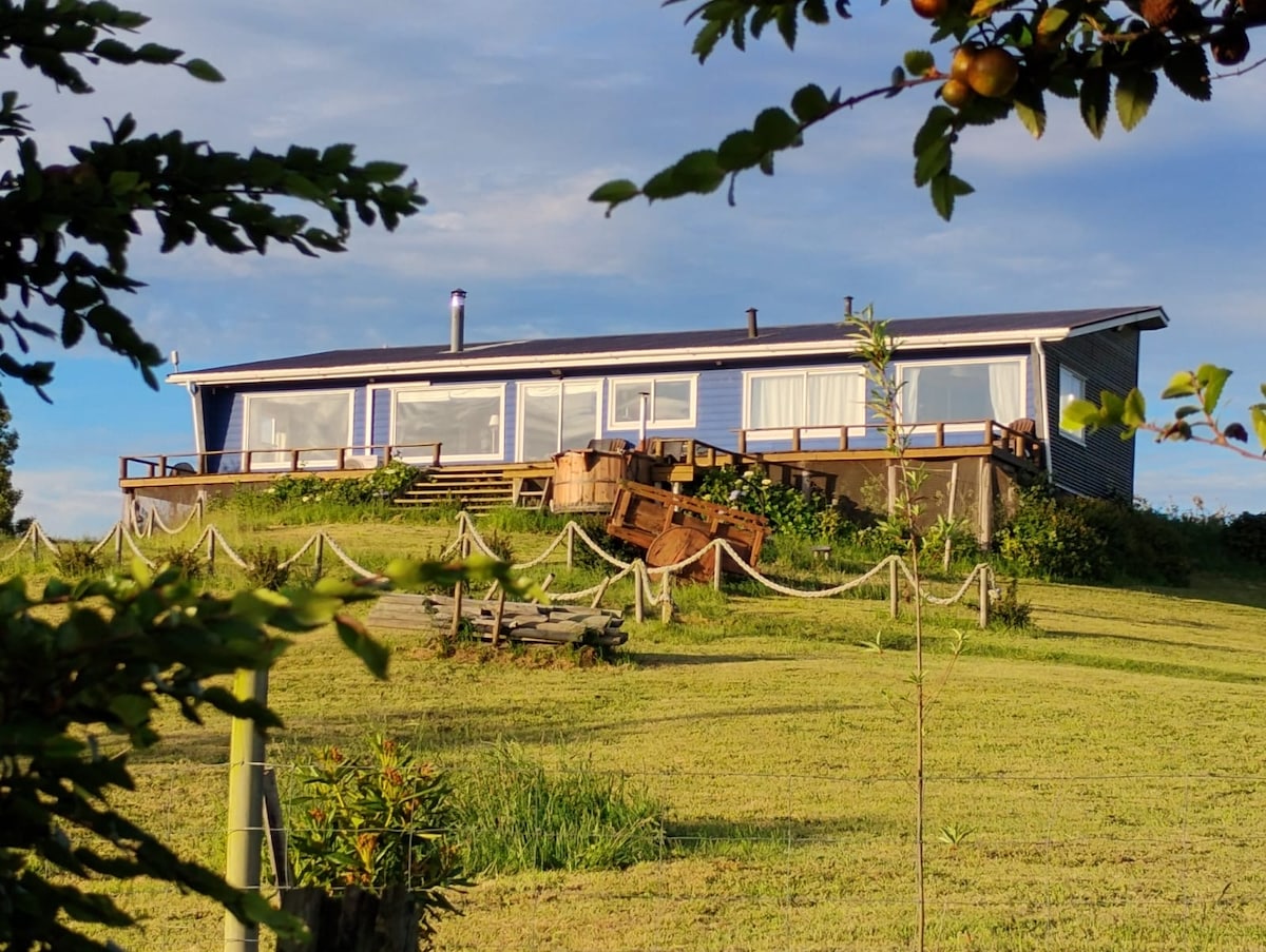 Casa de estilo industrial-chilote, maderas nativas, vistas espectaculares a la Isla de Lemuy y volcanes, desde todos los dormitorios y living. Tiene un estar-comedor-cocina en planta abierta. Cuenta con calefacción y chimenea, equipada completamente para disfrutar en familia o con amigos. Está situado en La Estancia-Curahue en la Península de Rilán, el mejor sector de la comuna de Castro. Cuenta con un parque de árboles y una huerta propia. Se puede acceder a pie a la Playa de Tutil. Experiencia