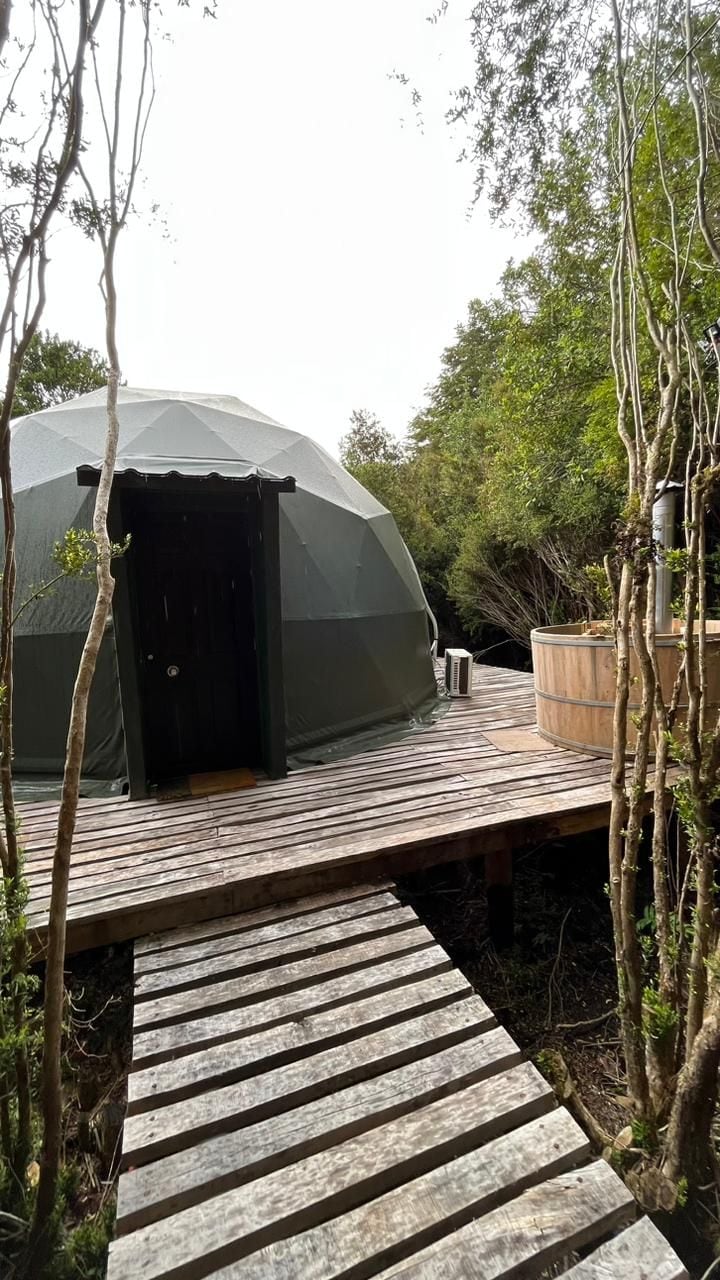 Lugar para descansar, desconectarse y disfrutar. Te ofrecemos un acogedor domo a 10 minutos de la plaza de Castro y 10 minutos de Dalcahue, consta con 2 dormitorios y capacidad para 4 personas, supermercado a un minuto, cercano a humedal en donde se realiza observación de aves migratorias (flamencos, zarapito, etc). Contamos con Wifi, calefacción a pellet, jacuzzi con insumos de spa, una cómoda sala de estar, gran tranquilidad y medidas sanitarias respectivas