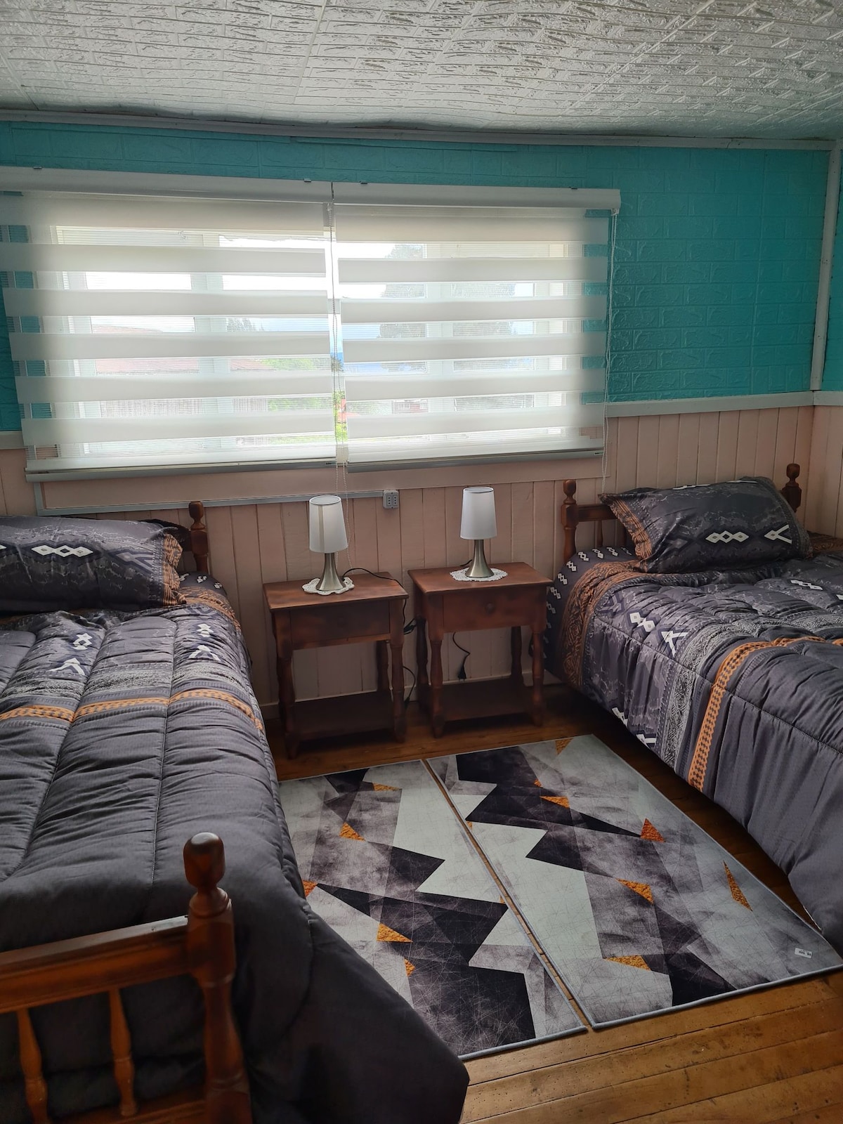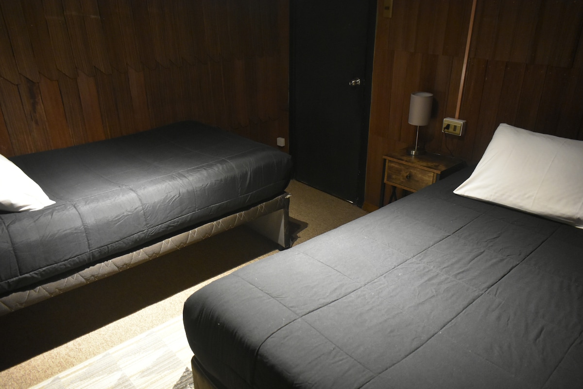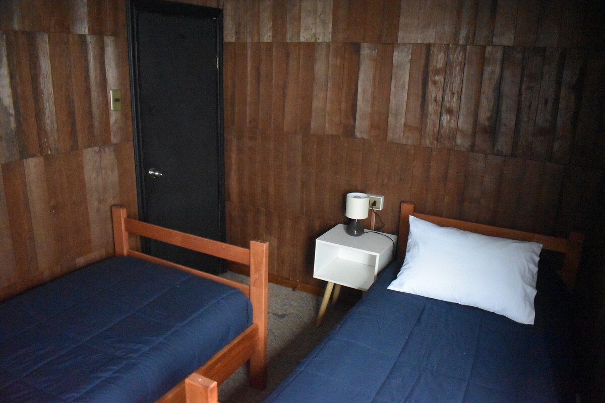 Casa equipada 5 personas... ubicada a 3 minutos del centro en vehículo, locomoción colectiva afuera de la casa. Es dpto interior con entrada independiente, estacionamiento, calefacción a pellet, wifi, roku, etc. En la casa principal (adelante) viven mis padres, quienes hacen entrega de las llaves de la cabaña y se encargan de todo lo que requiera el huésped. Se entrega una bolsa de Pellet cada 3 días de estadía. No cuenta con toallas ducha. Solo por temas de espacio, no se aceptan mascotas.