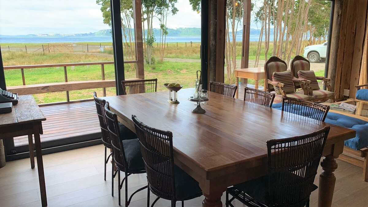 Maravillosa Cabaña Frente al Mar en un entorno Campestre Donde podrás Descansar y disfrutar inmerso en un paisaje Natural, Ven y observa a las Toninas (Delfín Chileno),Cisnes Cuello Negro , Patos silvestres, Colibrí, Chucao, Queltehues y mas de 30 Especies de aves. Nuestro paraíso acoge especies migratorias como los Flamencos ( desde Abril a Agosto) Caminatas por la playa y vistas Hermosas garantizadas!! A 20 min. de Castro y Dalcahue ya 15 minutos del Aeropuerto .
