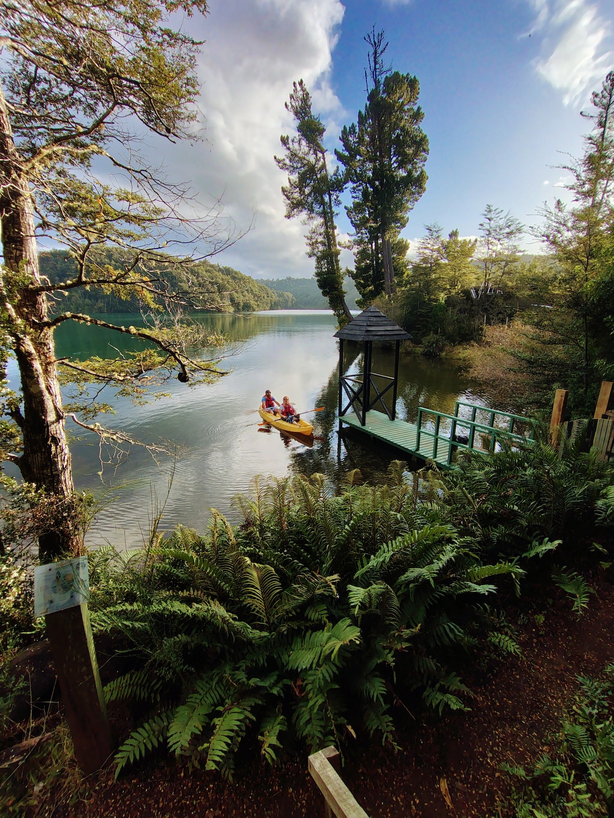 Un refugio íntimo para dos personas en medio del bosque nativo de Chiloé, dentro del Santuario Huillinco-Cucao. Diseñado para quienes buscan silencio, descanso y desconexión real, en un entorno natural privilegiado a minutos de Cucao y del Parque Nacional Chiloé. La tranquilidad, la privacidad y la conexión con la naturaleza hacen de este lugar una experiencia única.