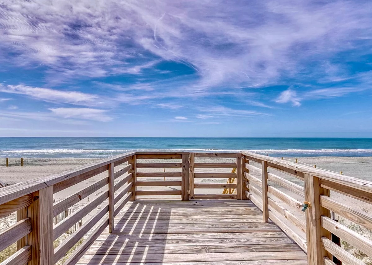 Enjoy this vacation spot that is right on Carolina Beach. Ebb Tide is just steps from the sand with your own private walkway and deck overlooking the sea. Ebb Tide is a perfect oceanfront spot to leave your daily life behind. You can’t beat the views. The house features an open floor plan, 4 bedrooms and 2 bathrooms on a quiet street but only a short walk to the Boardwalk. Our all-inclusive package includes rent, linens with beds made, and bath towels.