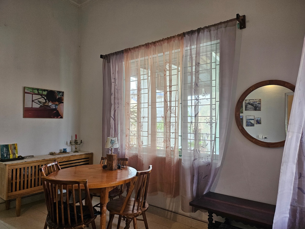 Unique cottage in town which offers you a private house with 2 bed rooms and a living room equipped a single bed, kitchen, yard and a big gardens with many kind of tropical fruit trees. Located on top of a small hill and in a quiet small hamlet, the house will bring to you a local authentic atmosphere with friendly neighbors along with the privacy and quietness. - 5mn walk to access nearest beach - Cai Beo - 10mn walk to town center - 3mn by car to Beo Pier - 6mn by car to Canonfort