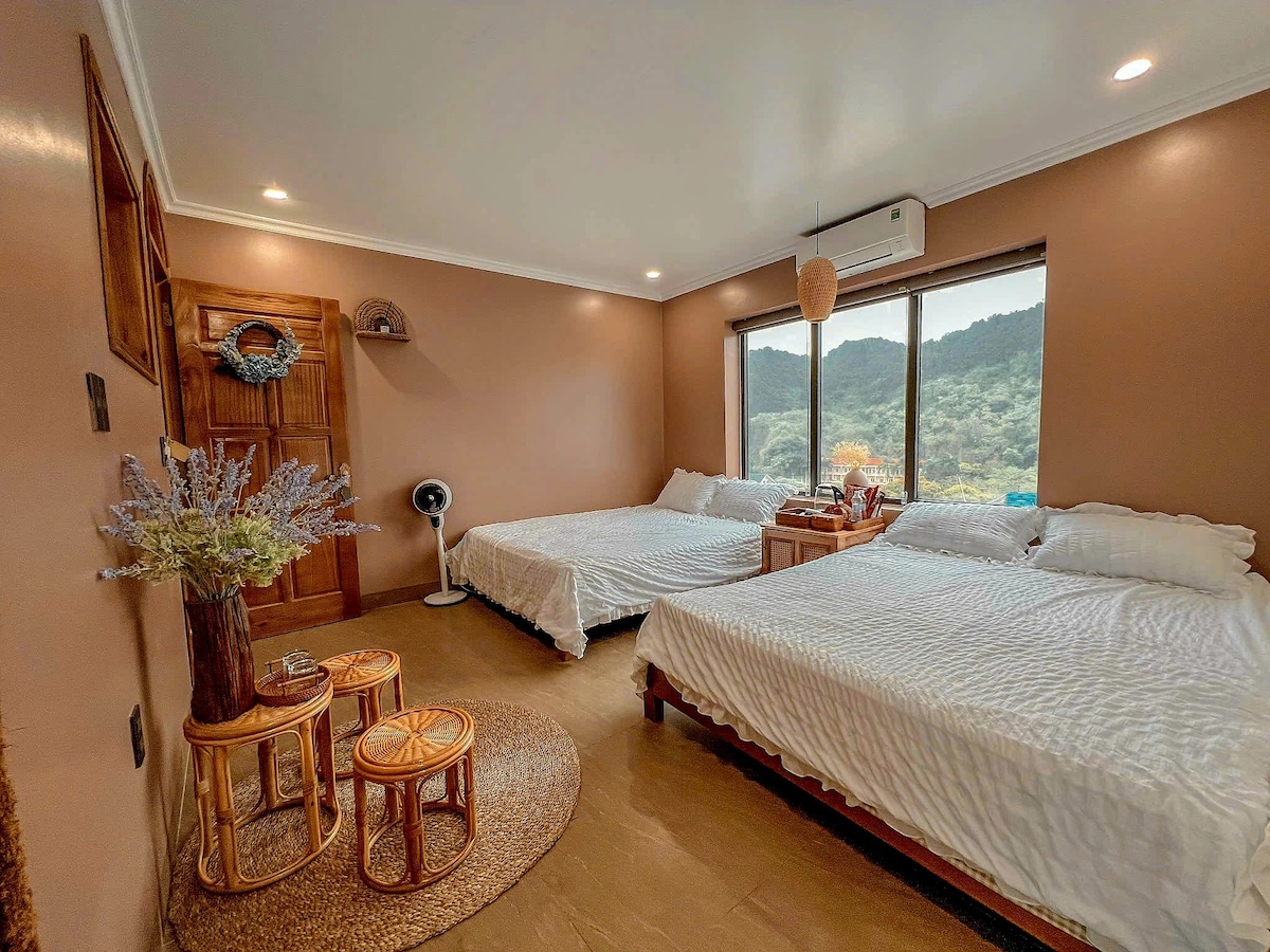 If you are looking for a truly quiet place to stay in Cat Ba, away from traffic noise and crowded tourist areas, Shalva Homestay is designed for you. This private double room features a peaceful mountain view, natural light, and a warm interior made from bamboo and wood. The space is simple, clean, and calming — ideal for couples or small families who value rest, privacy, and slow living.