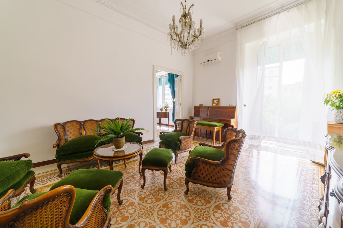 Enjoy a unique experience in the Magnificent Suite with Balcony View Vesuvius+complimentary breakfast and wine!With this accommodation in the center of Naples, your family will be close to everything!Mazzocchi's strategic location in the city center offers easy access to major attractions,transportation,and services.The house is comfortable and bright,with 4 beds,a equipped kitchen,air conditioning/heating,a washing machine,elevator. Free street parking and a H24 secured garage.Transfers/Tours