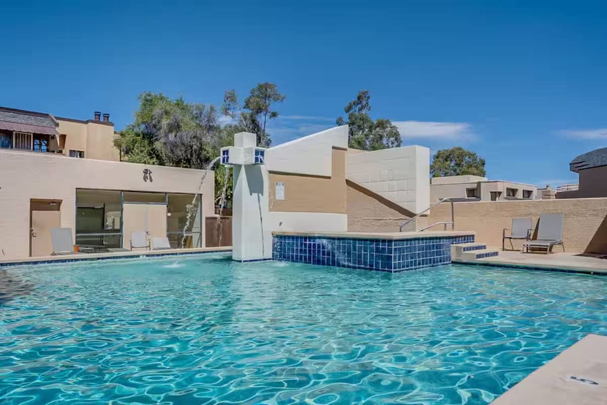 Relax and renew at this centrally-located, upscale, 2 bedroom/2 bath brand new condo. Premium location, second floor overlooking the Rillito Trail/The Loop for quick access to walking and cycling. Private balcony for nightly sunset/mountain views. Pool, jacuzzi, parking, fully equipped kitchen, huge closet, smart tv and high end decor. Boutique shops, restaurants, yoga, coffee, weekend farmers market at St. Phillips Plaza just 5 minute walk. U of A 10 min drive. 1 bedroom avail as well.