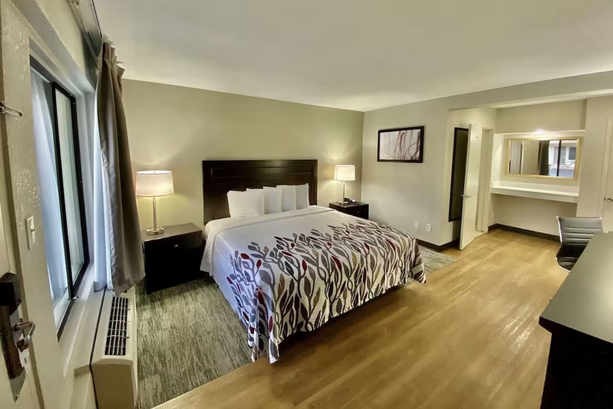 Settle in and stay a while at this clean, budget-friendly king room, perfect for work crews, long-term guests, or road-trippers passing through Tucson. Conveniently located just off I-10, our property makes it easy to get around the city — whether you’re heading to job sites, downtown, or local dining spots. Enjoy a comfortable king-size bed, free Wi-Fi, a flat-screen TV, and an in-room mini-fridge and microwave — everything you need for a simple, stress-free stay.