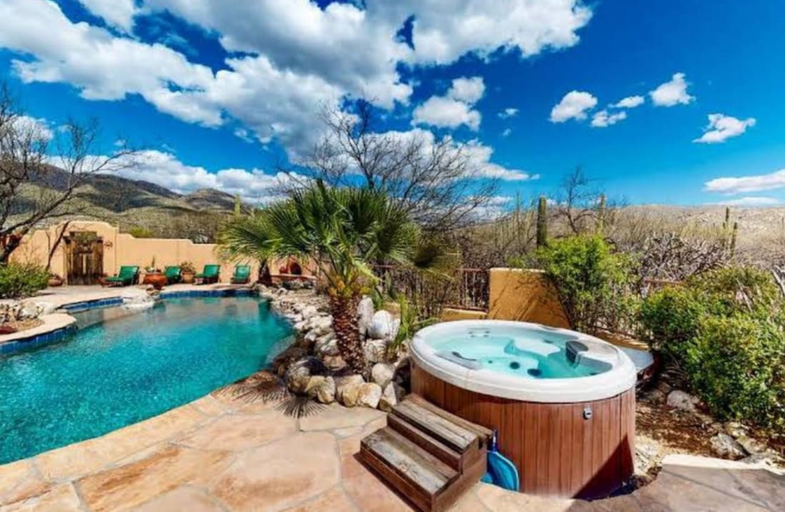 Your Private Oasis in the Catalina Foothills offers a huge 1 BR suite, with a private entrance, that can sleep 3. From the hot tub on your private deck you can watch the city lights come up under a blanket of stars! Warm yourself over a crackling fire & roast marshmallows! Full kitchen & laundry. Access to shared area with heated pool, billiards, treadmill, BBQ. Pics tell a 1000 words more than I have room for here! See them all, ask questions! Hope you visit soon!