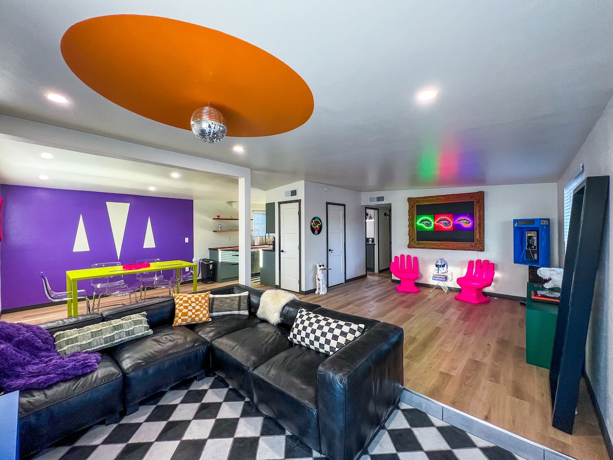 This charming condo in central Tucson is decorated with vibrant yellow accents and a blend of farmhouse-style and modern furniture. The unit includes 1 bedroom, 1 bathroom, an open living room, a patio, a walk-in closet, wireless internet, and a loft. With popular attractions within a 5-mile radius, this condo is the perfect spot for a delightful and convenient stay. *IMPORTANT DETAILS BELOW