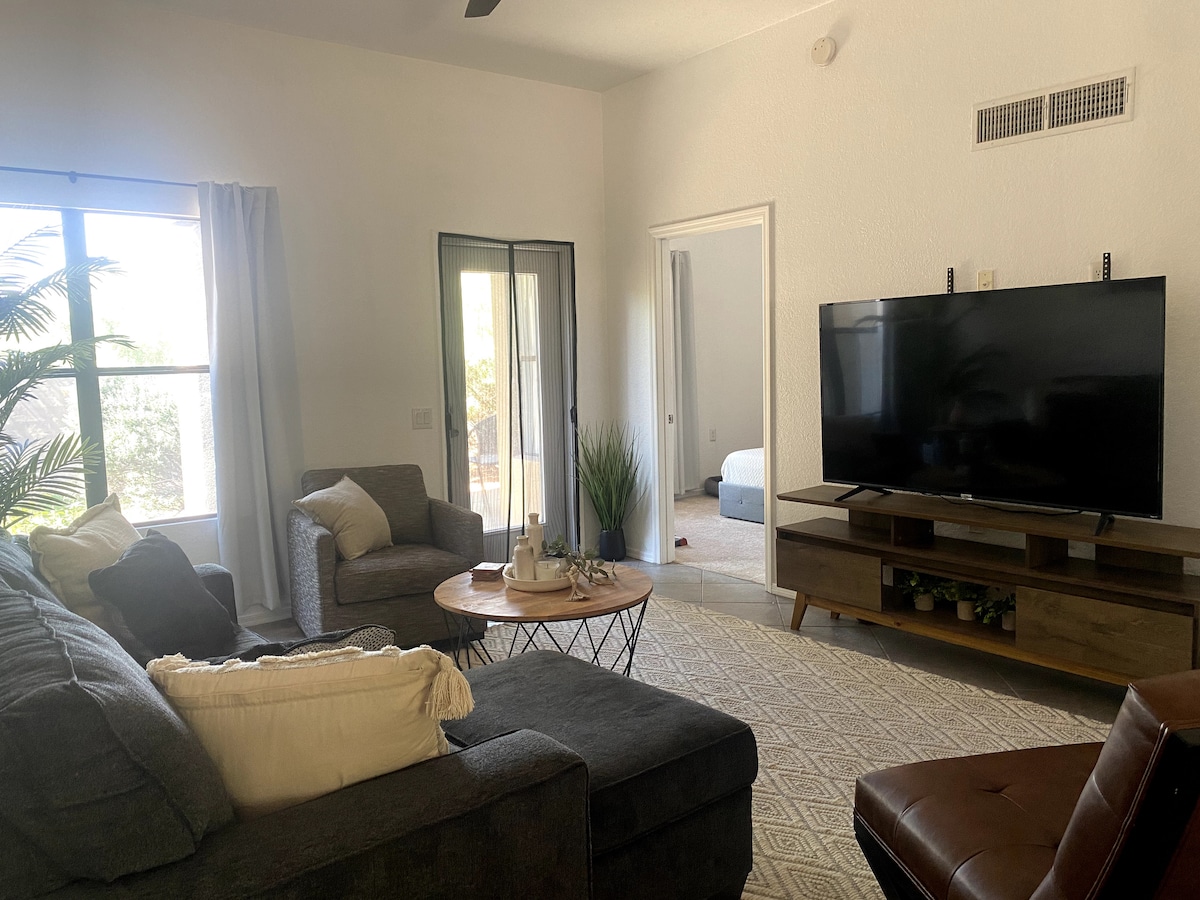 Retreat to the modern 2BR 1BA apartment situated in the high-end residential community in east Tucson. It promises a relaxing getaway just a stone's throw away from scenic trails, fantastic restaurants, shops, exciting attractions, and natural landmarks. The stylish design and rich amenities will leave you in awe. ✔ 2 Comfortable Bedrooms ✔ Open Design Living ✔ Fully Equipped Kitchen ✔ Smart TV ✔ High-Speed Wi-Fi ✔ Building Amenities (Swimming Pools, Gym, BBQ, Parking) No cats please.