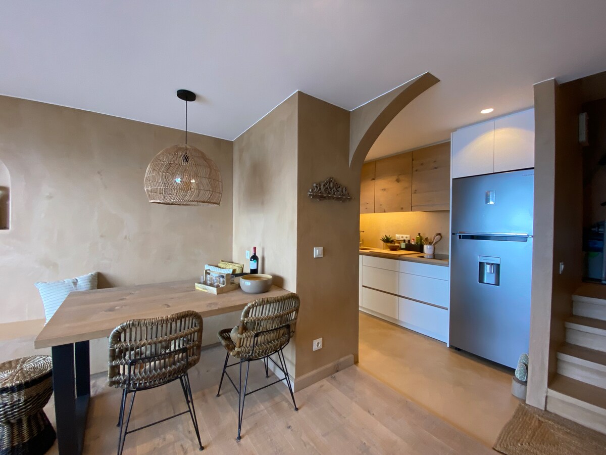 This apartment is home to chef Marc Vidal. It has been newly renovated to accommodate his needs, boasting a large kitchen counter top in an open-plan space, with hand-picked art pieces and furniture making it a warm and inviting home. It is super bright and has a wonderful terrace, perfect to sit out to eat and hang out, with views of the mountains and the sea. It is only a few blocks away from Sagrada Familia's church, a beautiful and authentic Barcelona neighborhood. Pictures from June ‘23