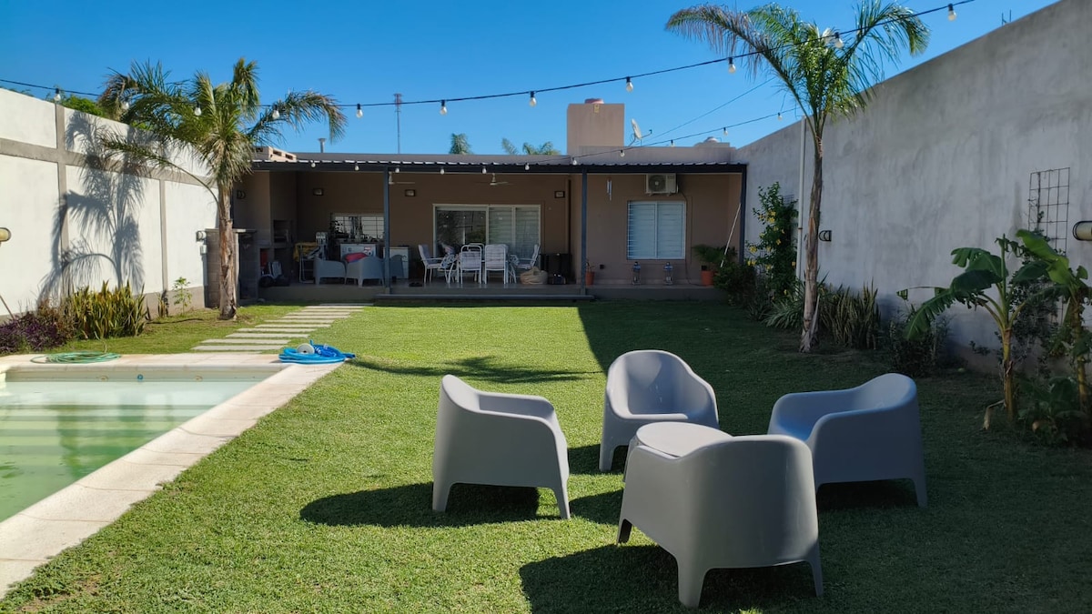 Relax with family and friends in this calm house! Here you don't shares common spaces with other people. This house incluide all services like wi-fi, bedding, air aconditioning (hot and cold), hot water, barbecue and Tv. Enjoy the garden with plants and swimming pool. We are from 10 min to the city center. You'll have all services and commerces in an area of 500 mts (restaurants, shopping).