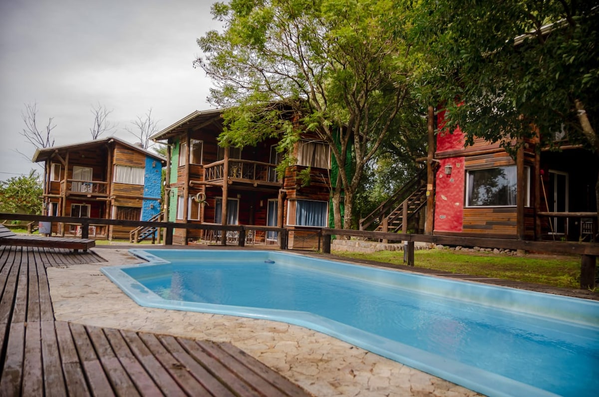 La Solana es un espacio pensado para descansar y conectar con la naturaleza en El Cadillal. Cuenta con 6 unidades cómodas, cada una con cama matrimonial, tres camas individuales, TV y wifi. Cada unidad tiene un gran balcón con hermosa vista a la montaña. Estamos a solo 500 metros del dique y dentro del predio hay restobar, ideal para disfrutar sin tener que moverte. Perfecto para venir en familia y desconectarse de la rutina.