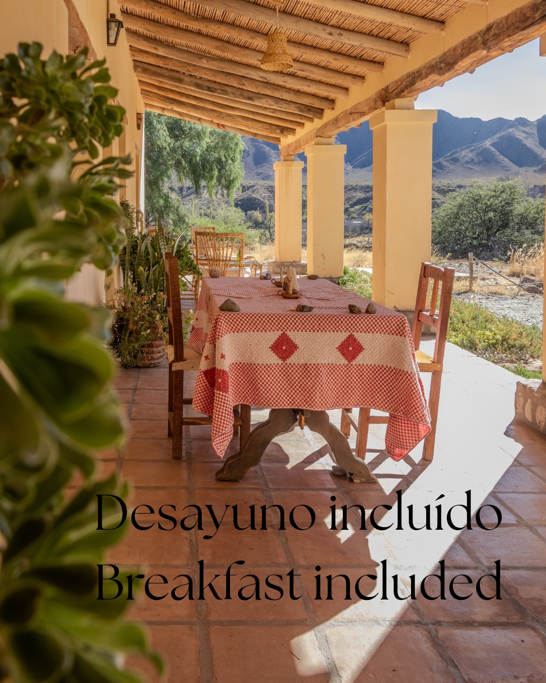 Relajate en este alojamiento único y tranquilo. Nuestros departamentos proveen confort y privacidad, con detalles calidos y terruños. Las vistas impresionantes de los cerros se pueden disfrutar desde la galeria. El espacio comun ofrece una pileta de natacion y el sol se puede disfrutar debajo de nuestras parras añejas de Torrontes. Ofrecemos estacionamiento techado en la propiedad.