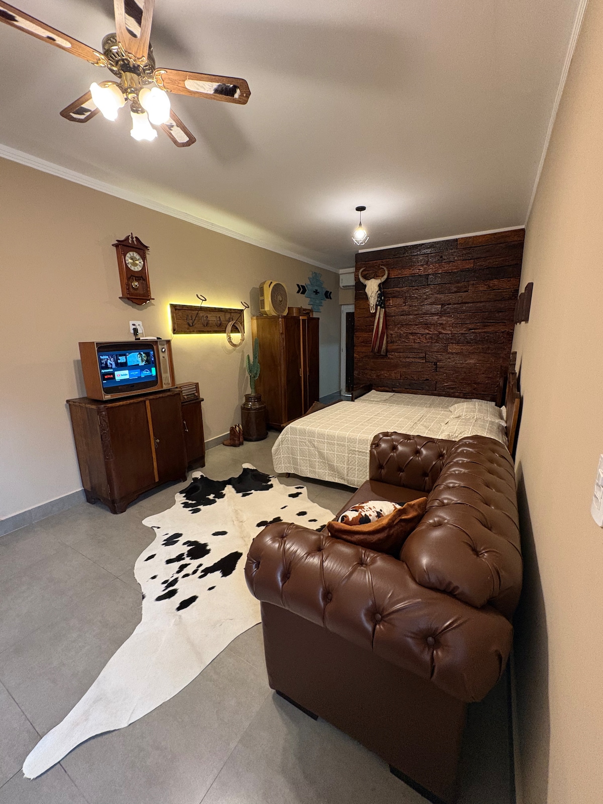 Relaxe em um quarto com clima country pensado nos mínimos detalhes: aconchego profundo, charme rústico, iluminação suave e aquela sensação acolhedora que lembra o interior — tudo isso em pleno coração da cidade!👢🐎