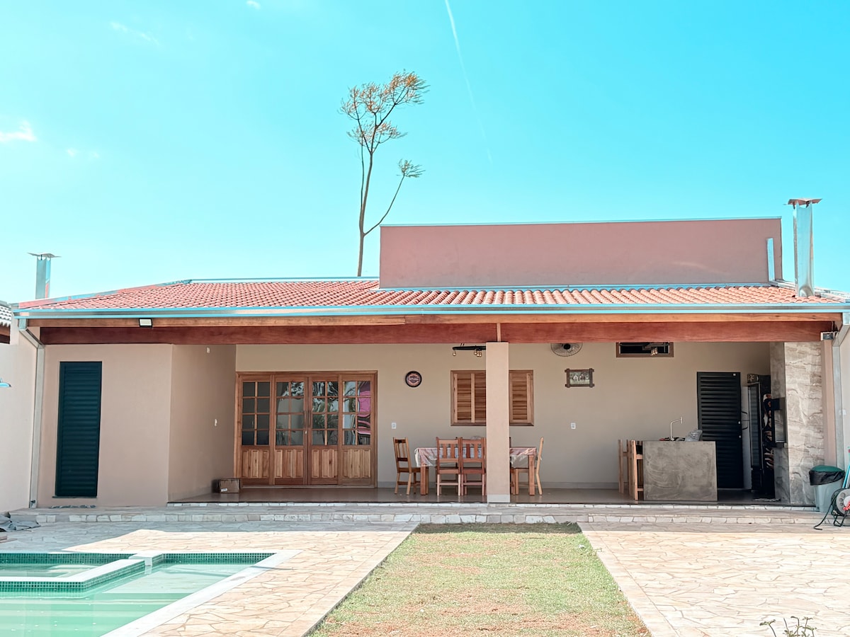 Relaxe com toda a família nesta casa tranquila e segura. Construção nova em terreno de 400 m², com pomar, piscina aquecida e espaço para até 3 carros no quintal. São 3 banheiros (1 suíte, 1 social e 1 externo na área da piscina). Acomoda até 10 pessoas com conforto: 1 cama de casal na suíte, 2 camas de solteiro e colchões extras nos outros 2 quartos. Cozinha completa com lava-louças, fogão, cafeteira Dolce Gusto, churrasqueira, local pra fogueira todos os utensílios necessários para sua estadia