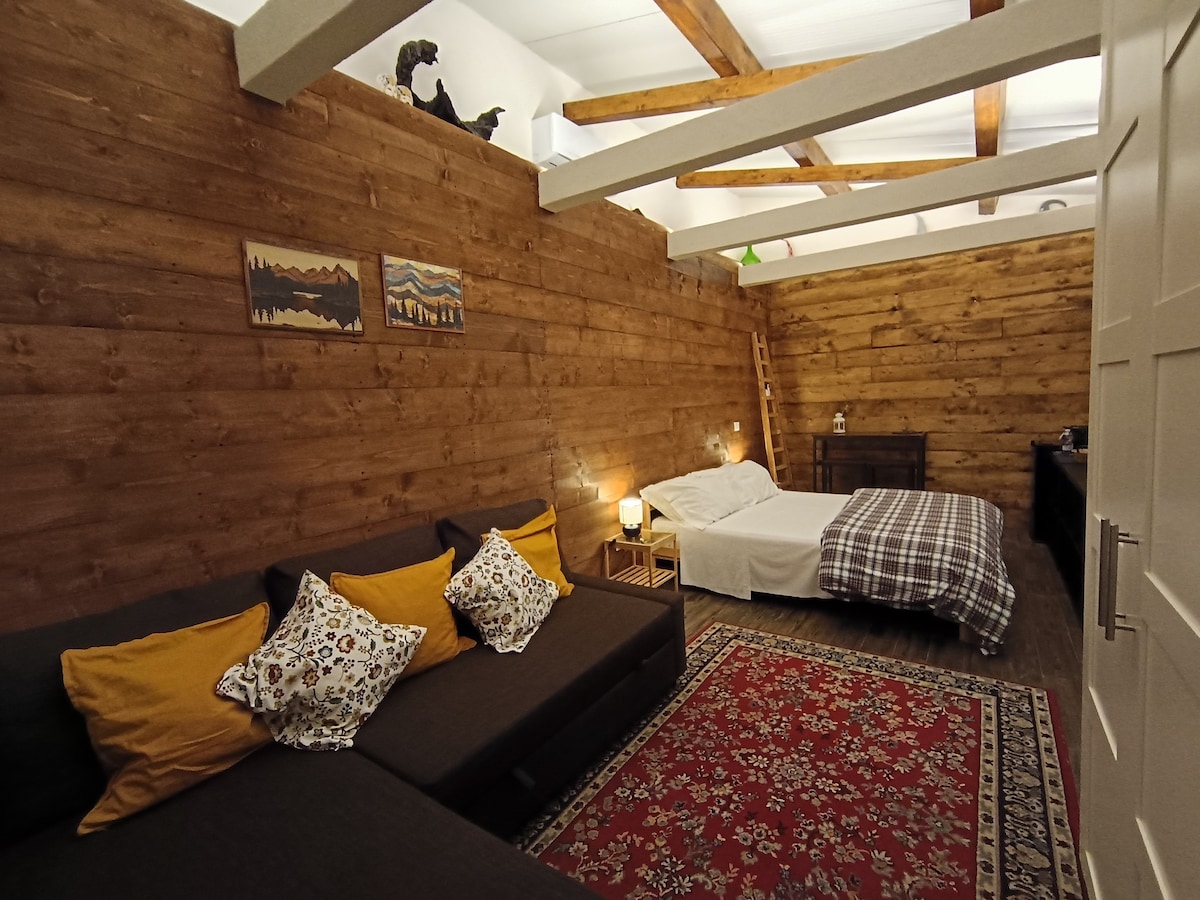 Benvenuti nello Chalet Vista Mare di Villa Loriana, un piccolo rifugio indipendente immerso nel verde ai piedi dell’Etna. Qui il tempo rallenta: il camino a legna e la vista sul mare, renderanno il vostro soggiorno speciale. Lo chalet dispone di un letto matrimoniale e un comodo divano letto, bagno privato in lavica e angolo frigorifero: spazi semplici ma curati, perfetti per una coppia o una famiglia fino a 4 persone. Intimità e natura si fondono in un’esperienza autentica siciliana.