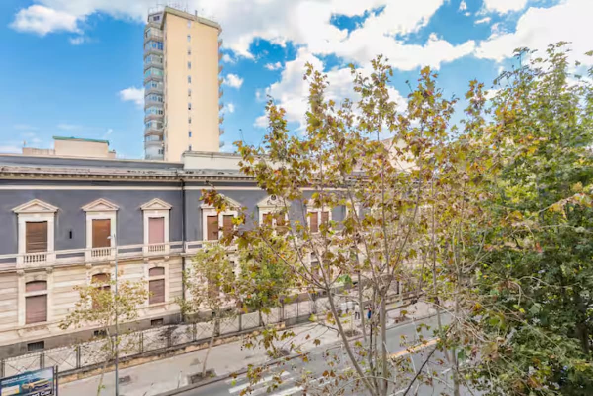 Cozy apartment in the heart of Catania. Located beside the iconic Via Etnea, walking distance to magnificent Duomo, in an early XX century building this three floor apartment is composed of two spacious bedroom, a full equipped kitchen and a roof terrace. Each bedroom, one per floor, has a double bed, bed-sofa, wardrobe and two balconies. Equipped with Smart tv, air conditioning and Wifi, the room boasts an en suite bathroom complete with a shower, hair dryer and complimentary hospitality set