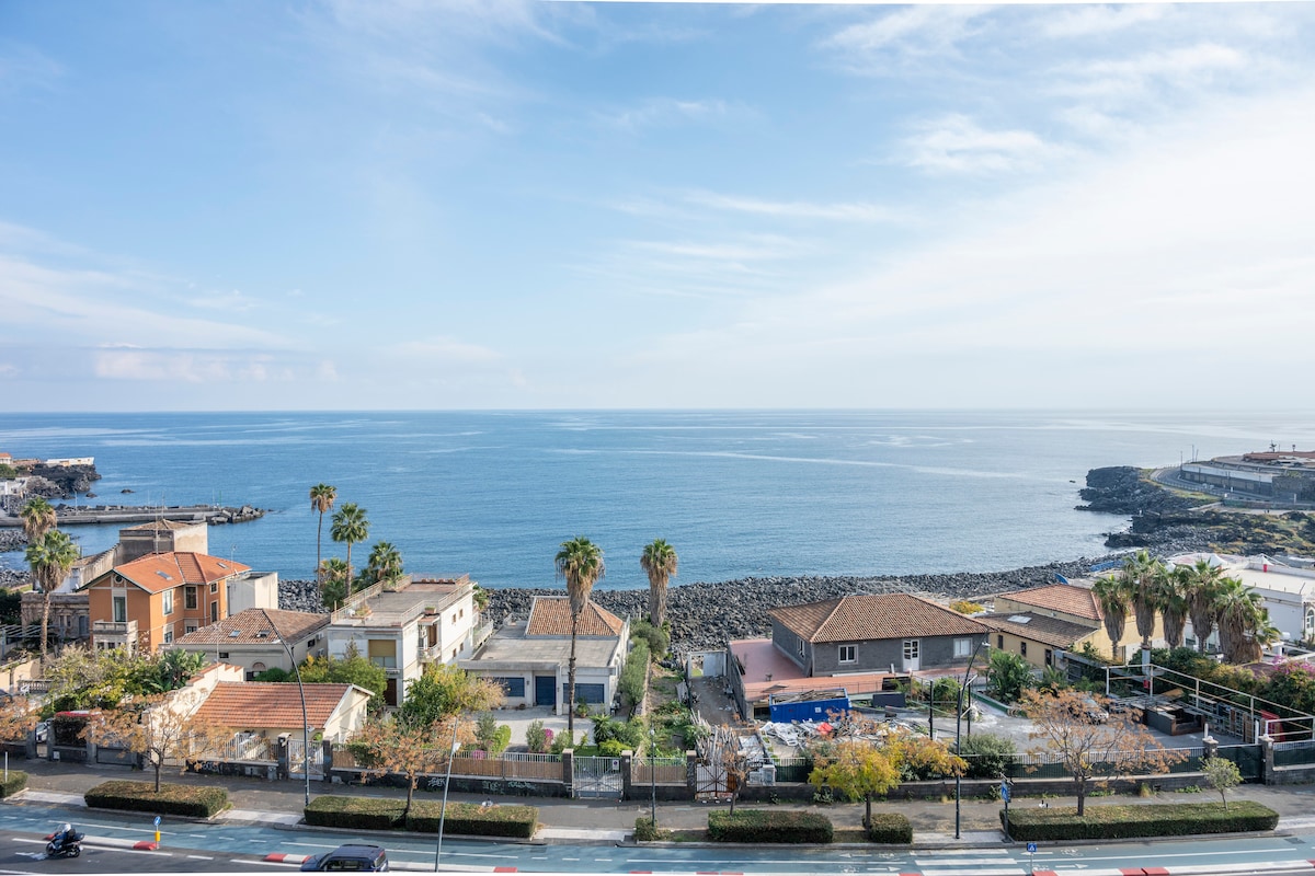 带宽敞露台的阁楼,可欣赏埃特纳火山的迷人景色