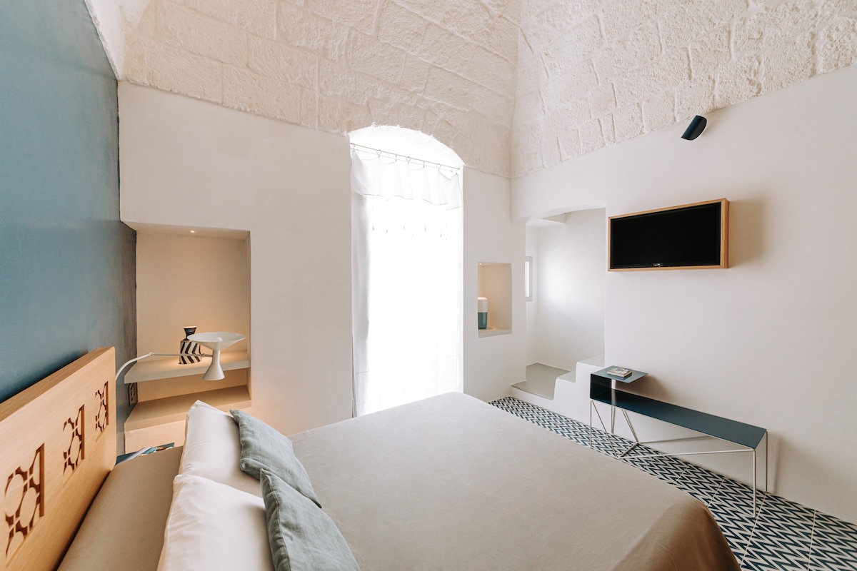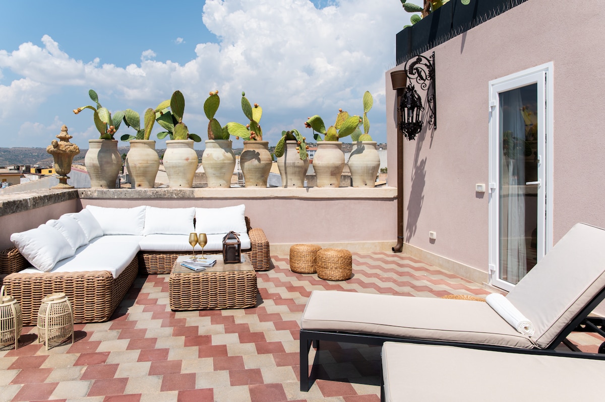 Una suite nel cuore del centro storico con le volte a botte e pavimento d’epoca. Finemente ristrutturata nel rispetto della sua essenza, senza trascurare i comfort per rendere unico il vostro soggiorno. Uno splendido terrazzo con vasca idromassaggio è pronto ad ospitare aperitivi e cene, in una location suggestiva ed intima. Le scale che conducono alla Suite e poi al terrazzo sono quelle tipiche del centro storico! Un po’ ripide alla vista, ma dotate di idonea illuminazione e doppio passamano!